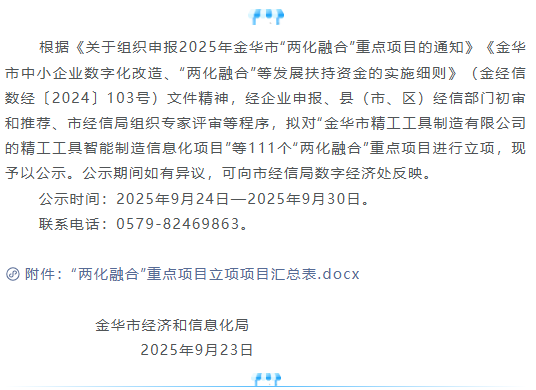 2025年金華市“兩化融合”重點項目立項...
